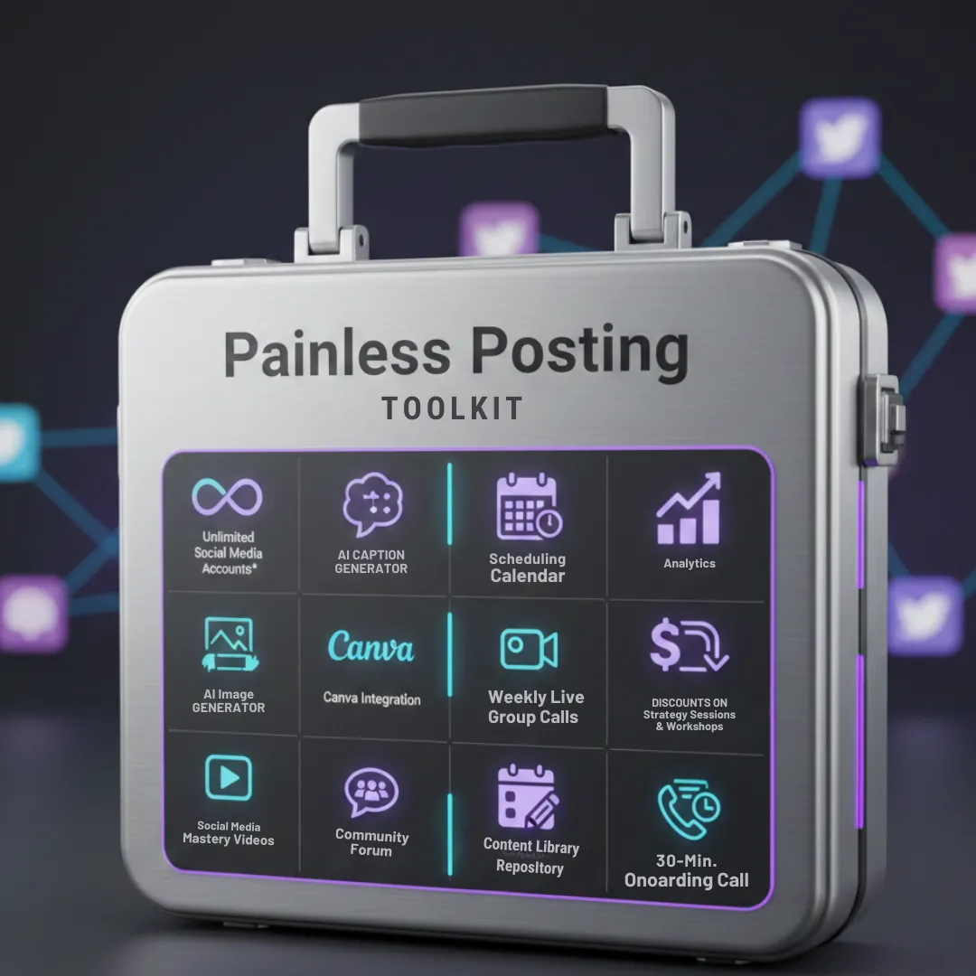 Painless Posting is designed to help busy entrepreneurs simplify their social media strategy, so they can grow their businesses without the stress.