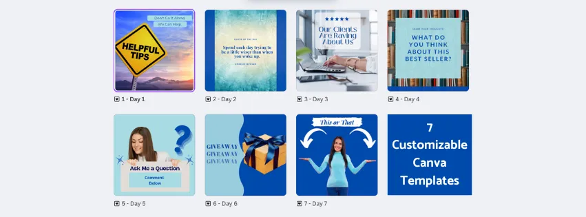 🎨 7 Professionally Designed Canva Graphics: Eye-catching templates you can customize in seconds to match your brand style.